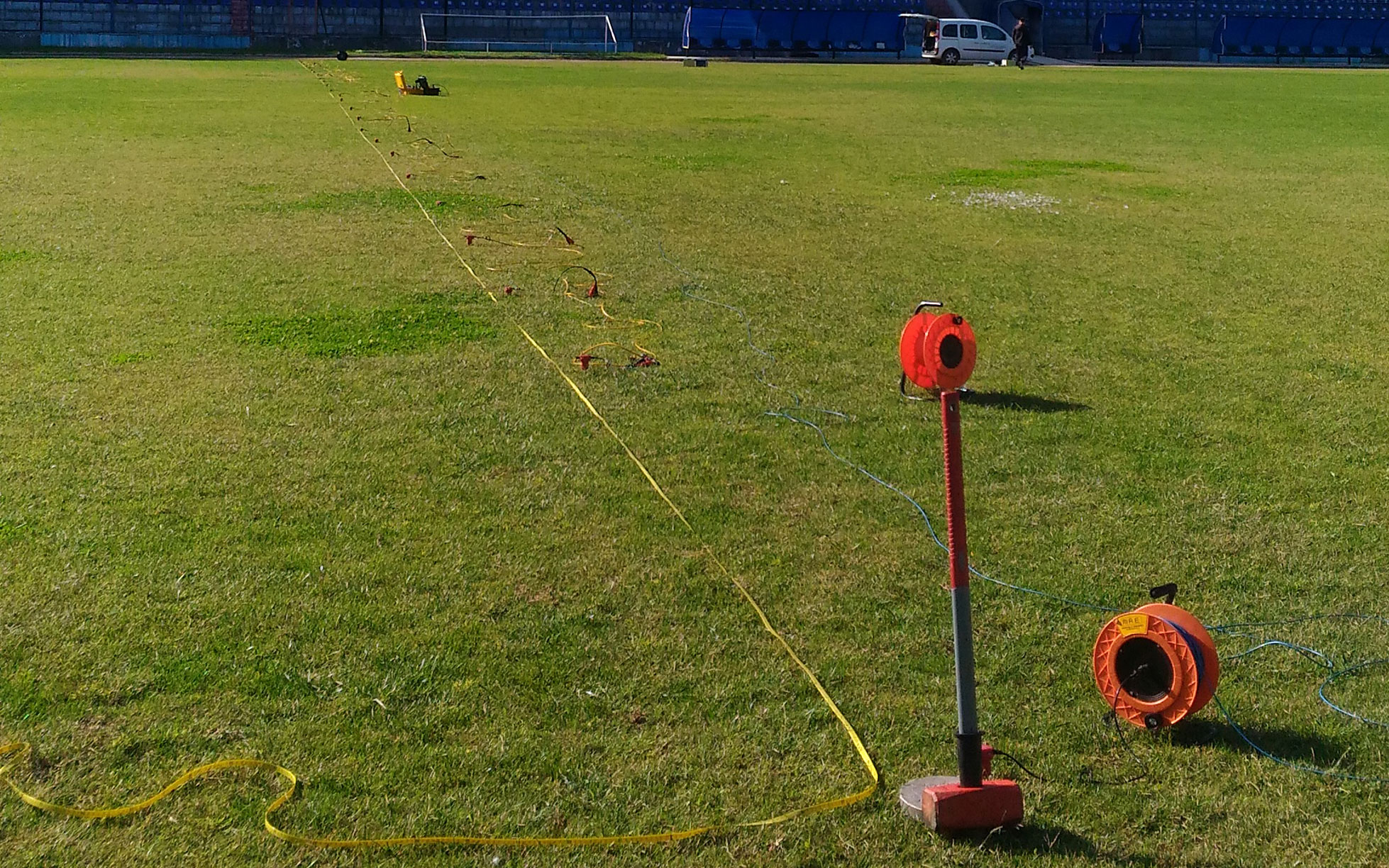 Seismograms acquired on the field are processed with the use of specialised and high performance software, to obtain the final stack section. The use of ultra-surface reflection techniques involves the identification and definition of the stratigraphic structure of geological bodies (stratification, depositional geometries, discordances, overthrusts, faults, cavities, etc.), of shallow to medium depth (from a few metres to 500 metres deep), and is one of the most effective surveying methods for the reconstruction of morphologies buried under the Earth’s surface.