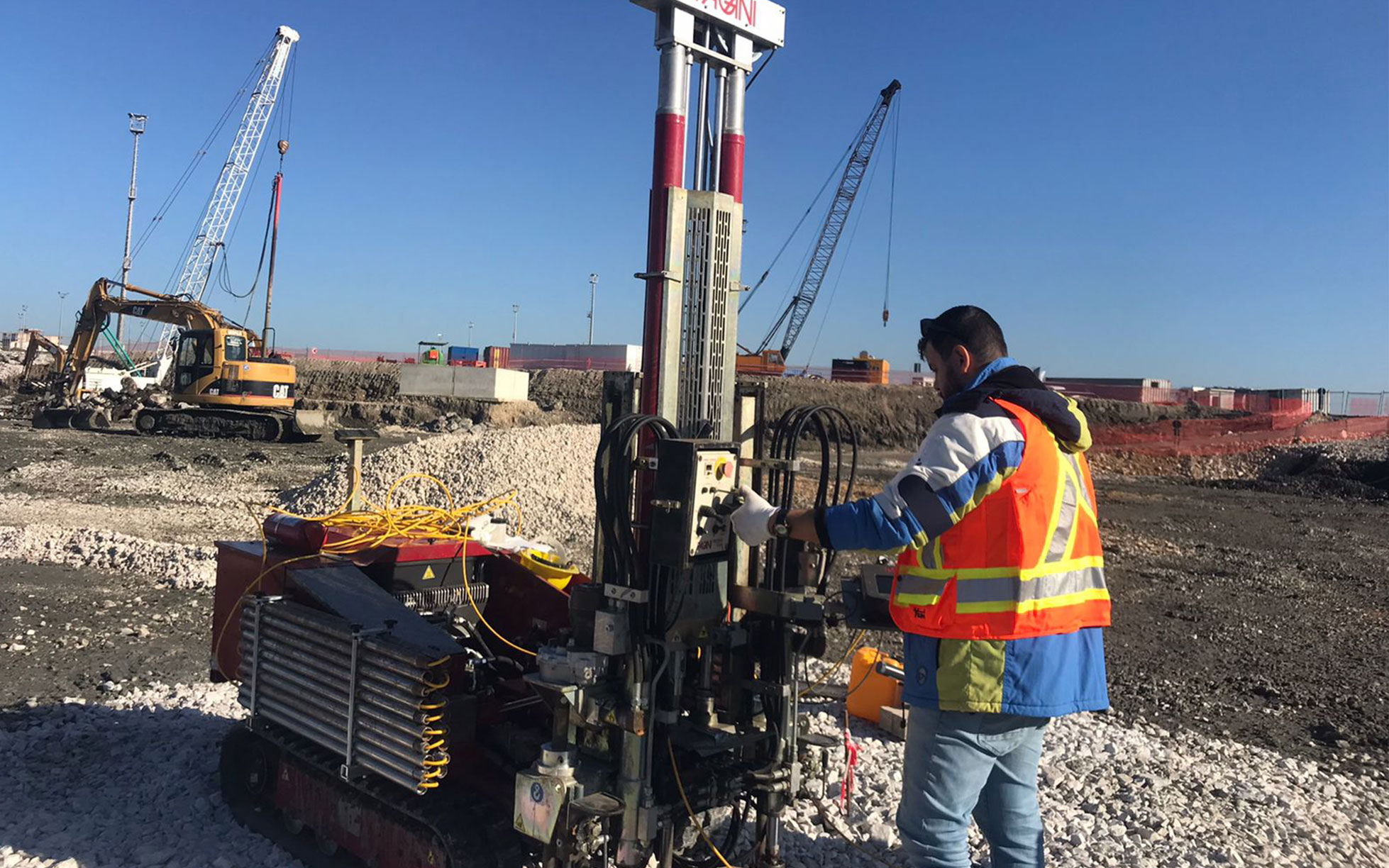 SCPT (Standard Cone Penetration Test) is used to measure a tip’s resistance to penetration (with 60° or 90° opening) using a striker, to reconstruct a resistance profile expressed in the number of strikes per unit of advancement. Known correlations are used to establish a connection between the number of strikes and relative density (RD), and then to obtain other geotechnical parameters, the main one being the angle of friction. This type of testing is particularly suitable for incoherent terrains.
